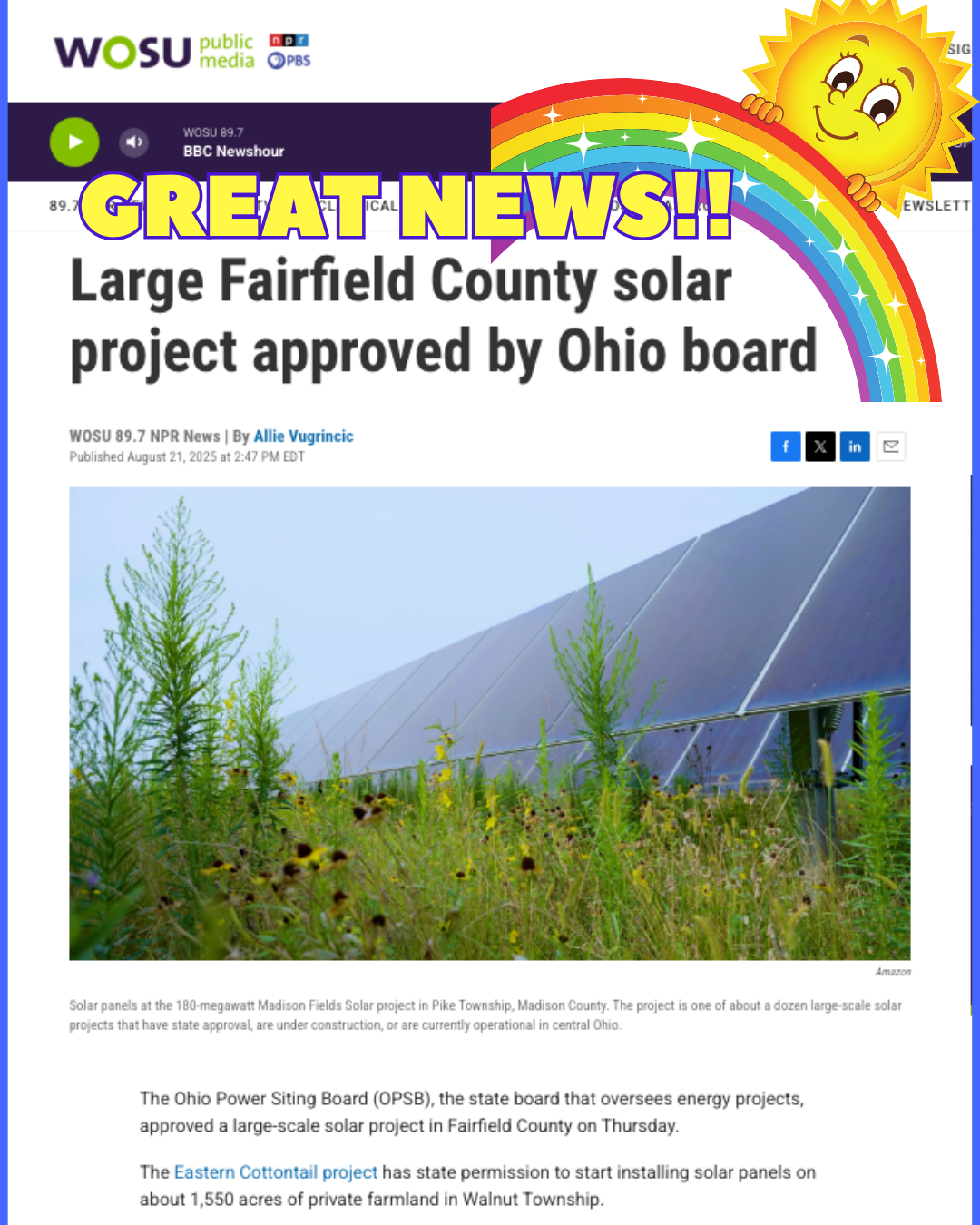 An incredible victory for Fairfield County: The Eastern Cottontail Solar project has been approved by the Ohio Power Siting Board!